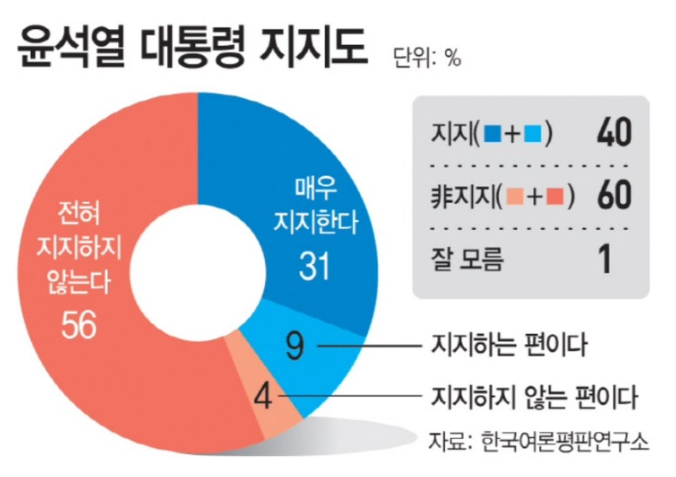 '尹 지지율 46% 나와…2030 지지율도 40%대 ↑'