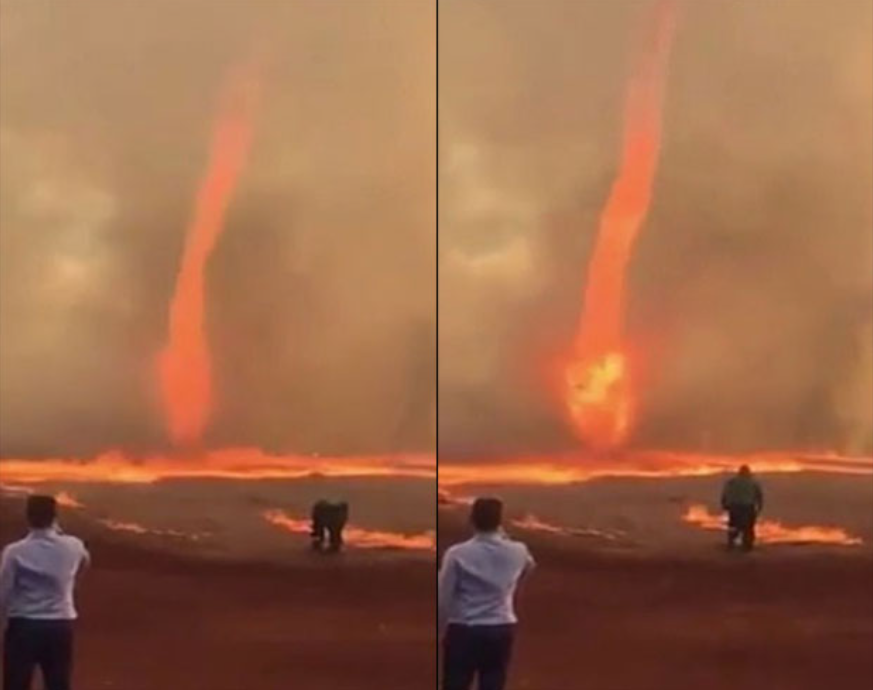 파이어토네이도는 강력한 바람으로 나무를 뽑고, 차량을